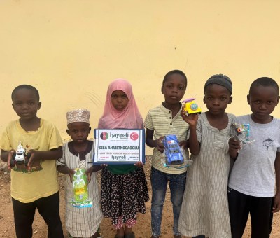 Afrika’daki çocuklar için bir oyuncak, sadece bir eşya değil; sevinç, umut ve mutluluk demek. Hayıreli Derneği olarak Tanzanya’da çocuklara oyuncaklar hediye ediyor, yüzlerinde unutulmaz gülümsemelere vesile oluyoruz. Sen de sadece 1000 TL bağışla bir çocuğun kalbine dokunabilir, ona bayram sevinci yaşatabilirsin.